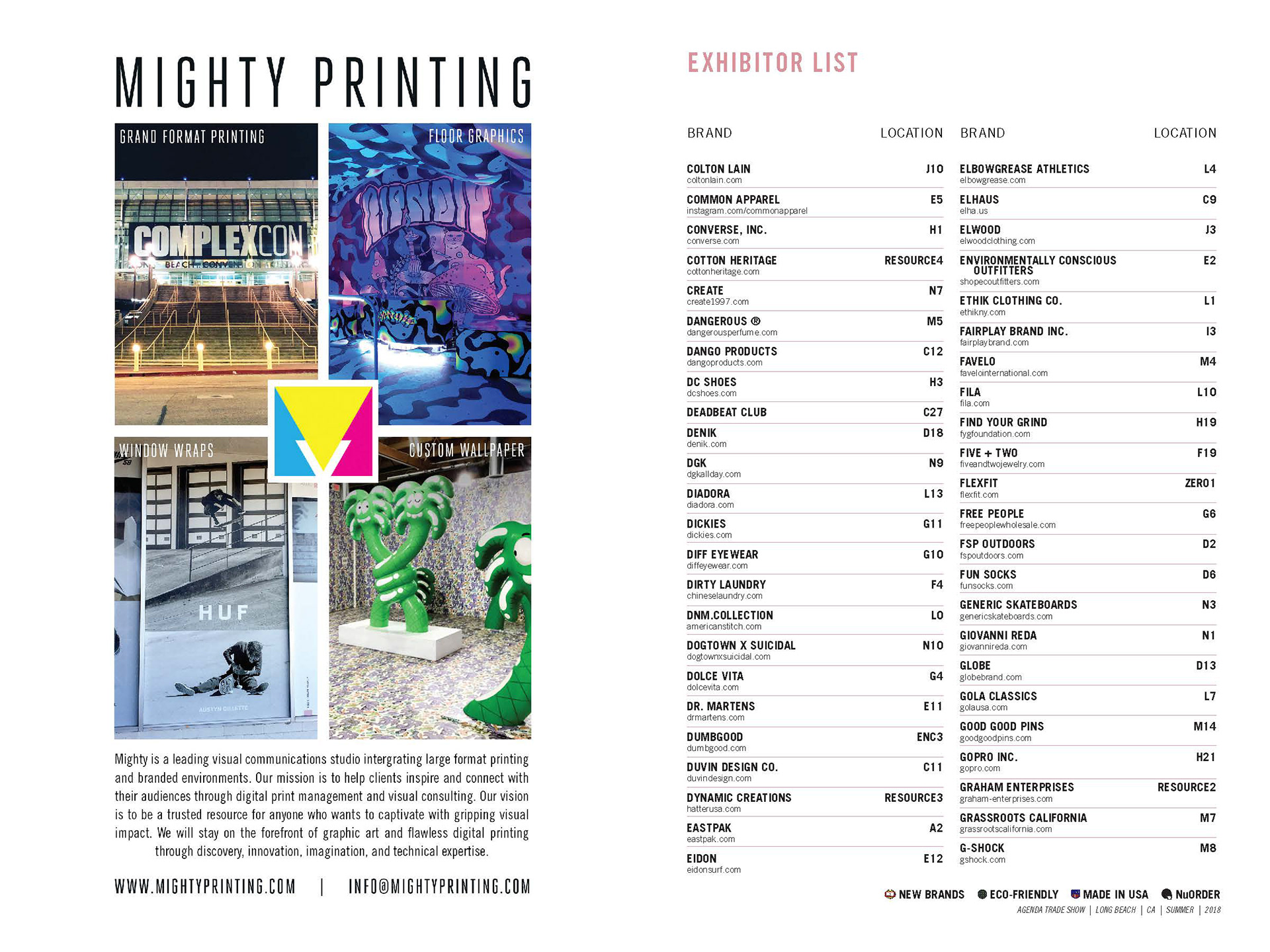 This was the show booklet given out at the 2019 Long Beach Agenda Show. You will see the corresponding photos with the sections of the show floor, listing out the brand exhibiting in each.