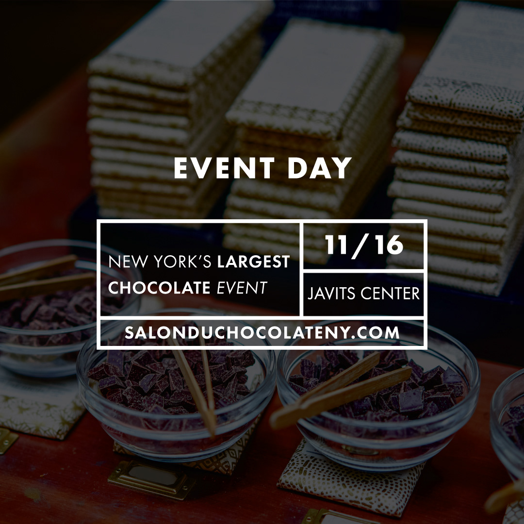 Some sample social posts created for the Salon du Chocolat NY show, showing the marketing team how to use the branding in both social posts and social 'stories' layouts.